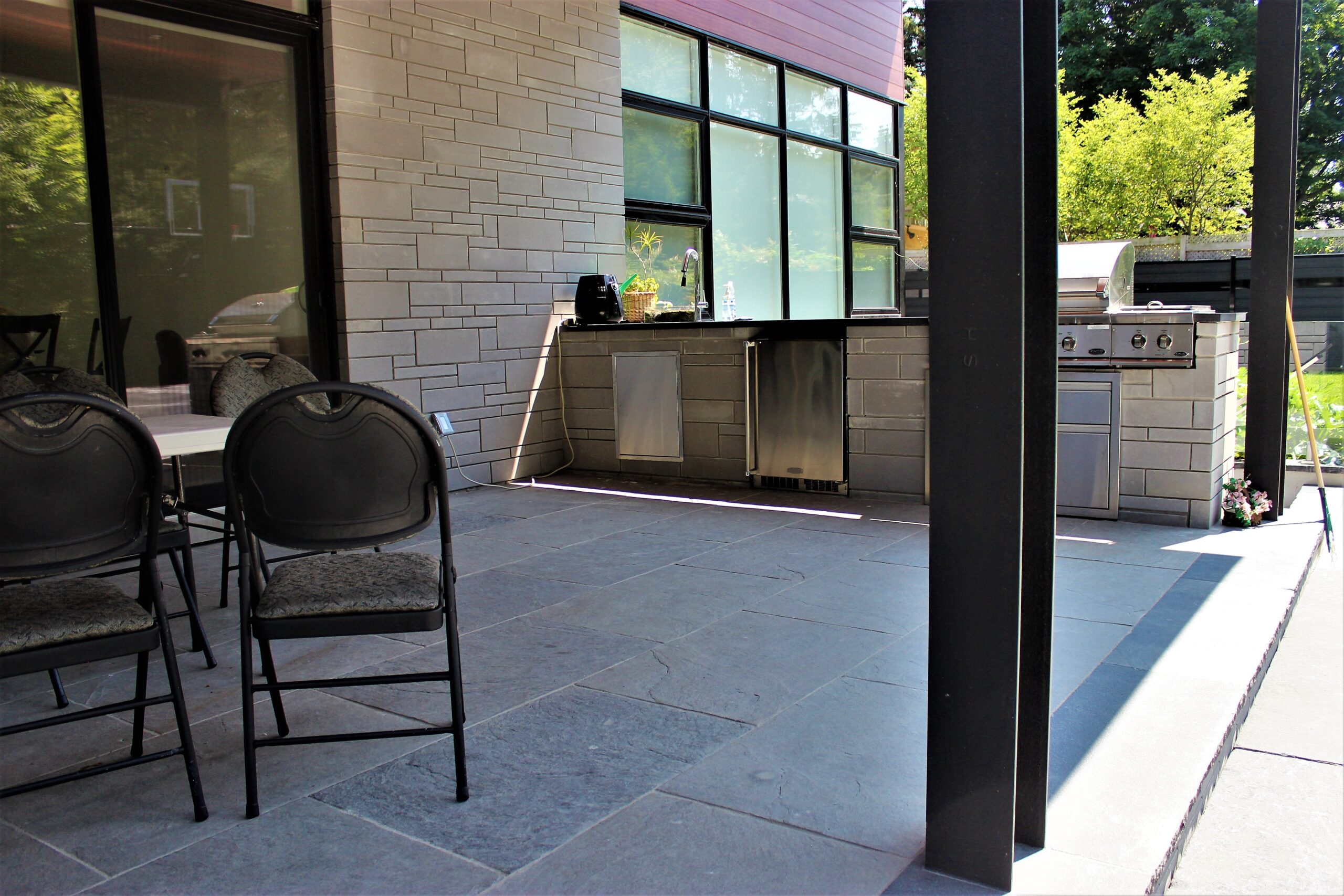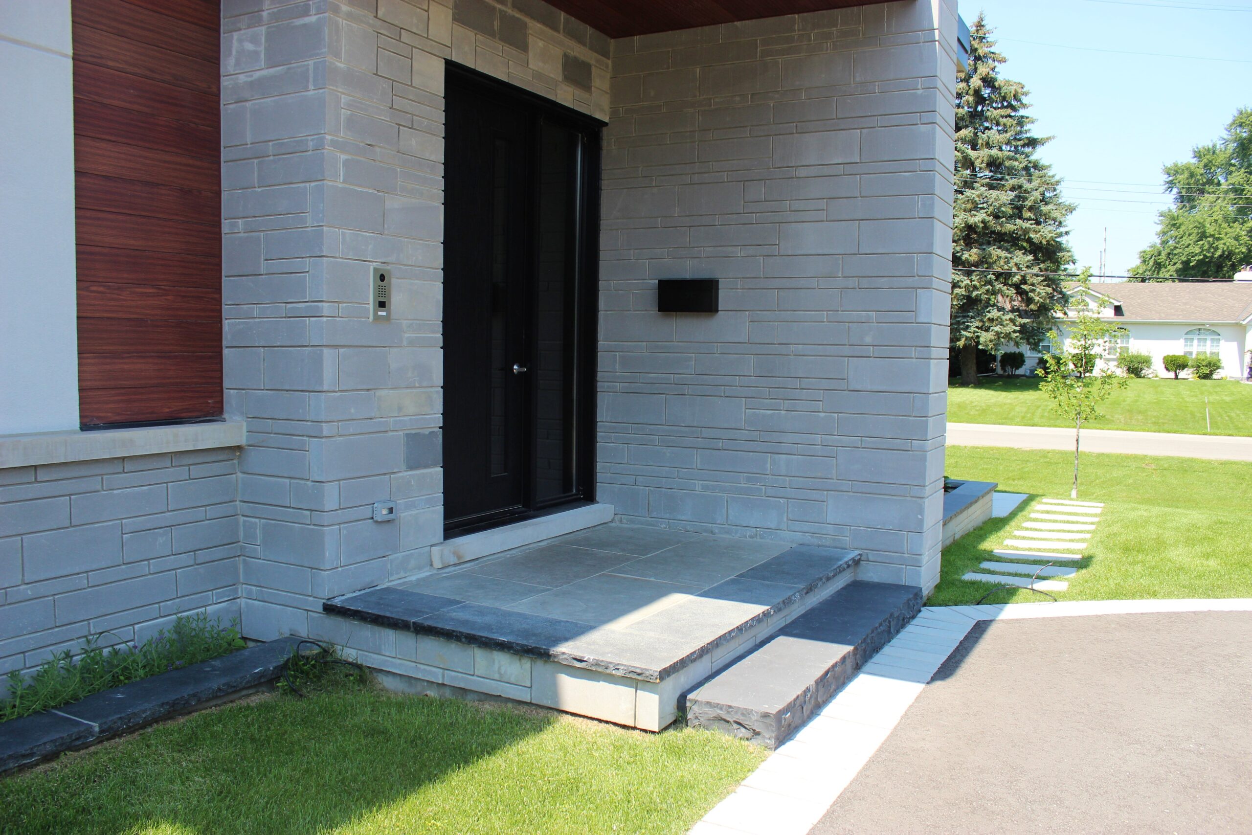 The stone’s unique texture—a perfect balance between a smooth grain and a naturally refined feel—creates a sophisticated backdrop that complements both minimalist modern designs and classic garden settings.