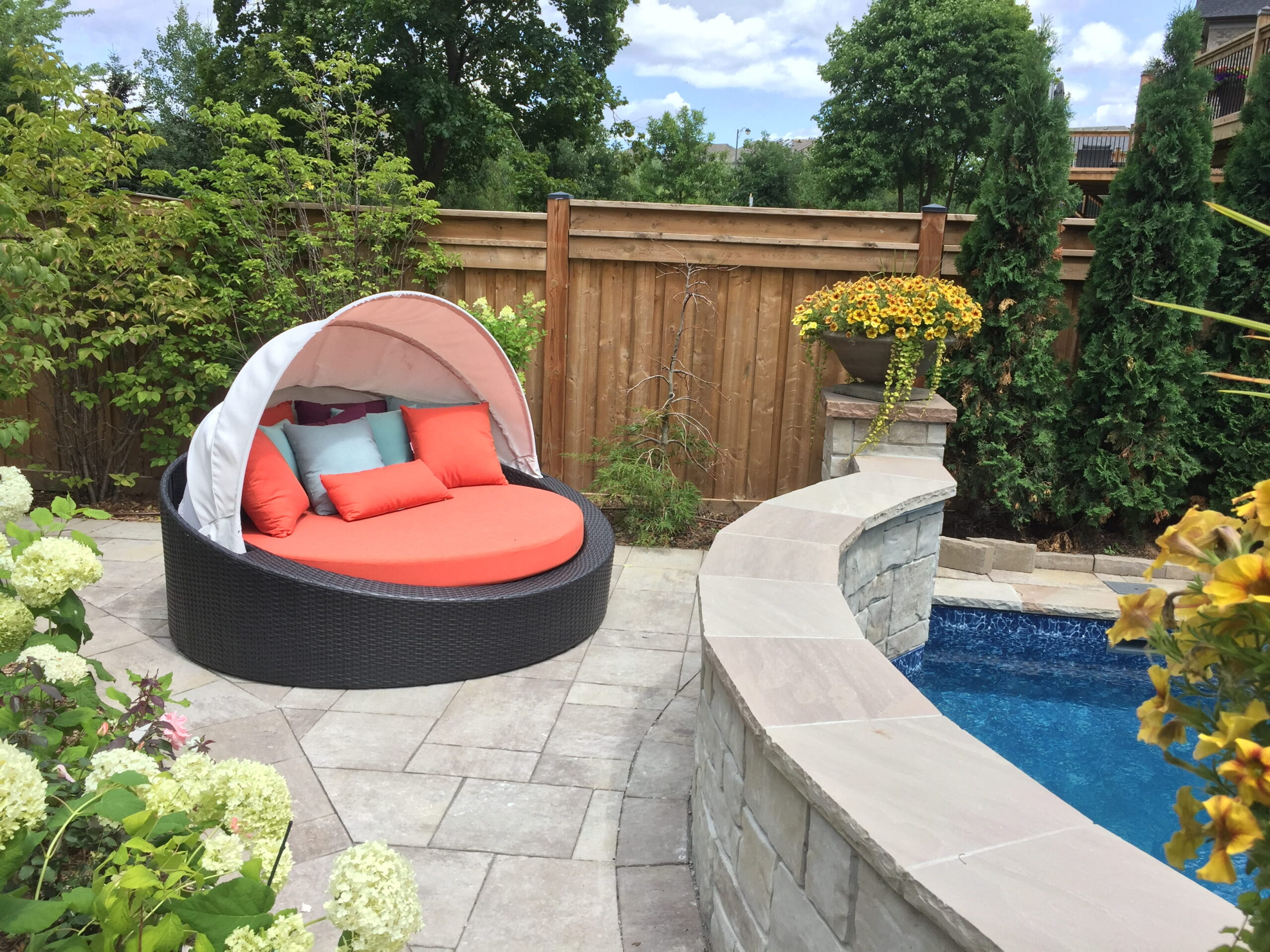 The beautiful earthy tones and rugged texture create an instantly warm and inviting atmosphere. This stone adds a timeless, elegant touch that makes your outdoor space feel like a true extension of home.
